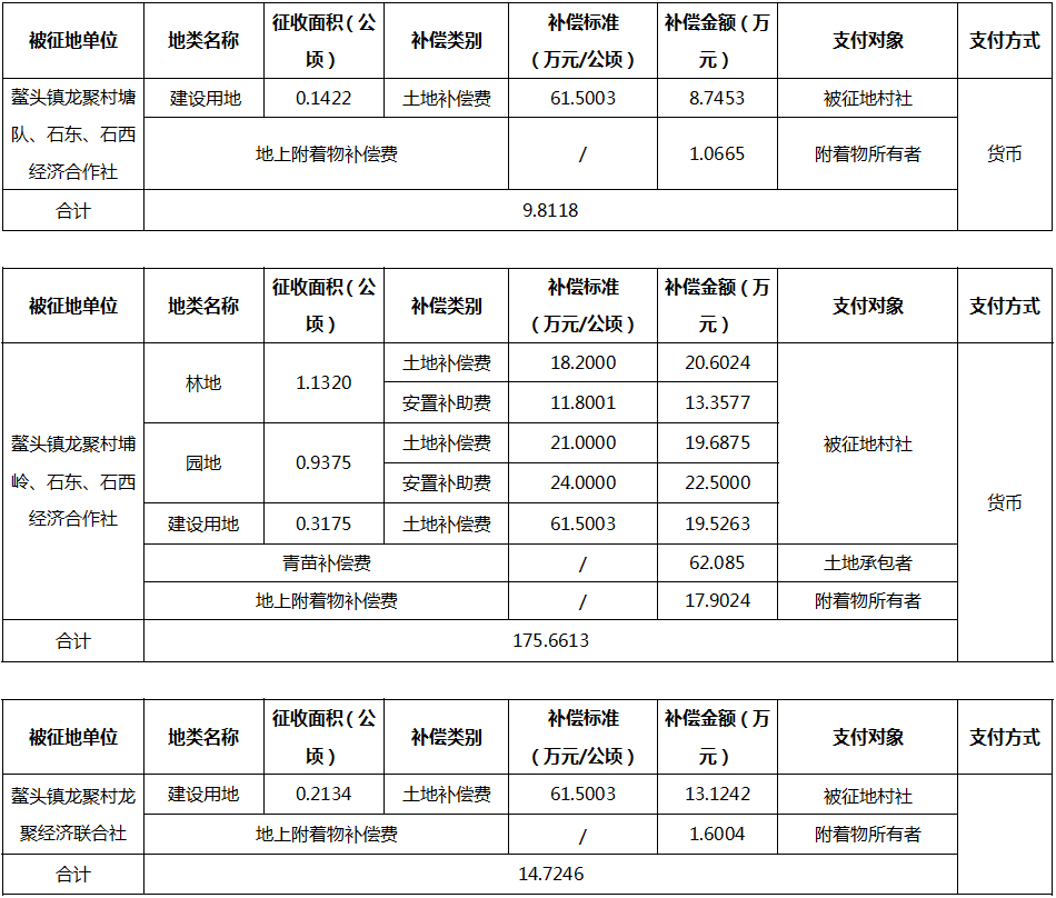 (二)本次征收土地所涉及的被安置农业人员由广州市从化区鳌头镇龙聚村塘队、石东、石西、埔岭经济合作社,龙聚经济联合社以货币补偿等形式安置。