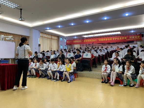 活动邀请暨南大学生态学系助理研究员肖利娟开展题为“水资源与人类文明”的主题讲座。肖老师从人类发展史与水资源关系出发,借大禹治水等例子展开分享,用平实的语言传达了水资源对人类的重要性,并呼吁大家爱护水资源。同学们也积极开动脑筋与老师互动,纷纷表达了自己对在日常生活中如何践行“珍爱美丽地球爱护自然资源”的想法。讲座现场还派发了知识手册等宣传资料,让师生更深入了解世界地球日和自然资源等相关知识。讲座结束后,对参加“世界地球日”宣传系列活动之主题绘画评比活动中的获奖同学进行了表彰。