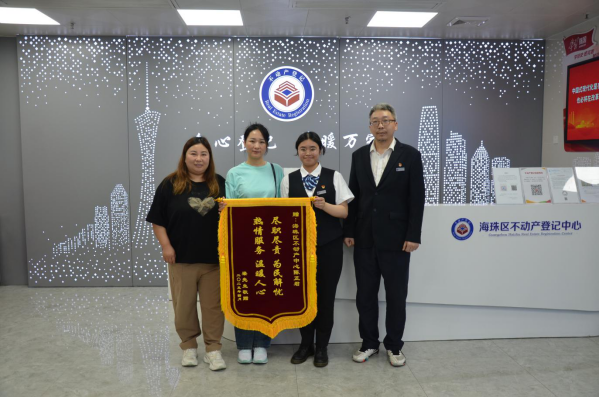 海珠区不动产登记中心党员获市民梁先生赠送锦旗