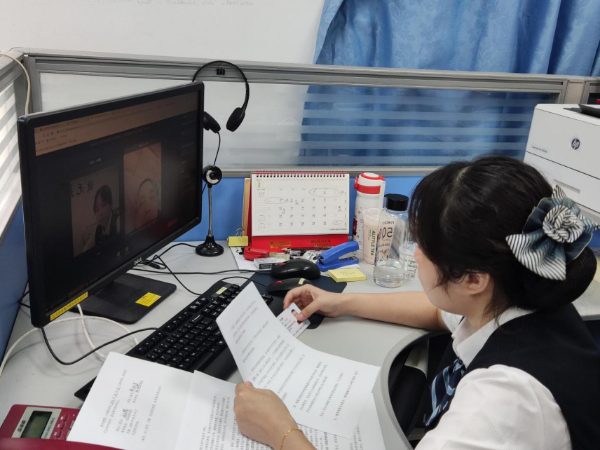 工作人员与委托人视频互动