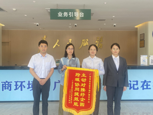 广州市品睿房地产开发有限公司向白云区不动产登记中心送上锦旗
