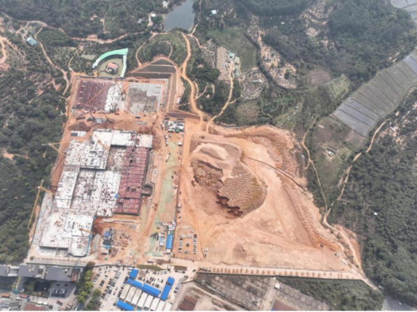 项目于2024年11月开工建设,总建筑面积约25万平方米。项目一期61亩用地已完成供地,地下结构施工进入砌砖及装饰阶段,试制车间、辅助车间相继封顶,研发中心主体结构施工至四层;二期21亩厂房主体已完成及砌筑工程基本完成,设备管道安装与外立面装饰同步推进;三期68亩用地经省自然资源厅批准纳入城镇开发边界,其中23.927亩储备用地与17.392亩留用地方案,已通过增城区土地管理委员会会议审议,待开发边界调整后启动供地程序。