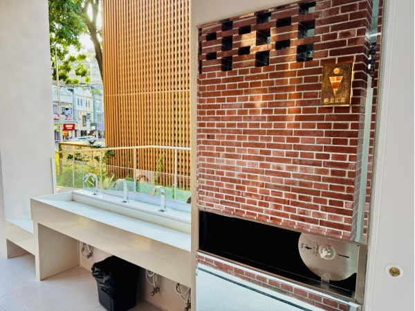 越秀区署前路小学及公交总站旁的公厕改造,体现了从功能优化到人文关怀的全面提升。项目团队基于实地客流分析,科学调整了厕位配比,并增设无障碍与第三卫生间,显著缓解了高峰时段的排队压力。细节之处,更见巧思:创新的“多功能厚墙”系统,通过整合西向立面空间,既为清洁人员提供了便捷的储物场所,也为使用者留出了宽敞通风的过道。这一设计巧妙化解了广州闷热气候下的通风难题,减少异味的同时,也营造出富有岭南特色的建筑灰空间,让公厕成为一处兼具实用性与文化感的过渡场所。此外,清晰的标识、感应龙头,以及场地内对老年人与儿童的无障碍友好设计,共同织就了一张细腻而周到的人文关怀网络,让公厕真正成为城市中温暖的公共节点。
