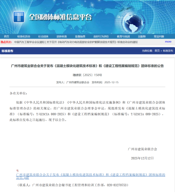 近日,由广州市城建档案馆牵头编制的《建设工程档案编制规范》(标准编号:T/GZSCIA009-2025)正式获批并予以发布。该《规范》作为一项团体标准,旨在通过建立一套覆盖建设工程全过程的档案管理规范,形成行业普遍遵循的统一操作依据,推动建设工程档案管理制度化、标准化和信息化。